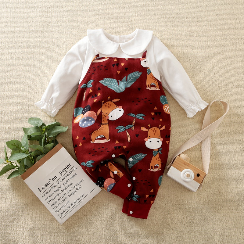 Baby Girl Doll Collar Animal Deer Print Long Sleeve Jumpsuit Wholesale