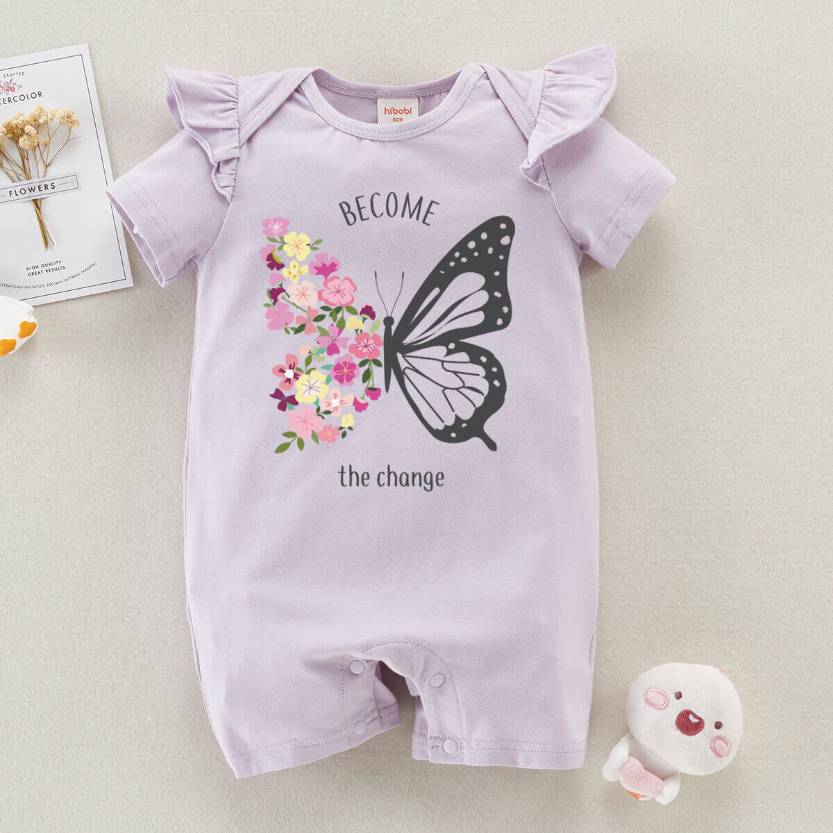 Baby Cute Butterfly Print Short Sleeve Cotton Bodysuit Wholesale