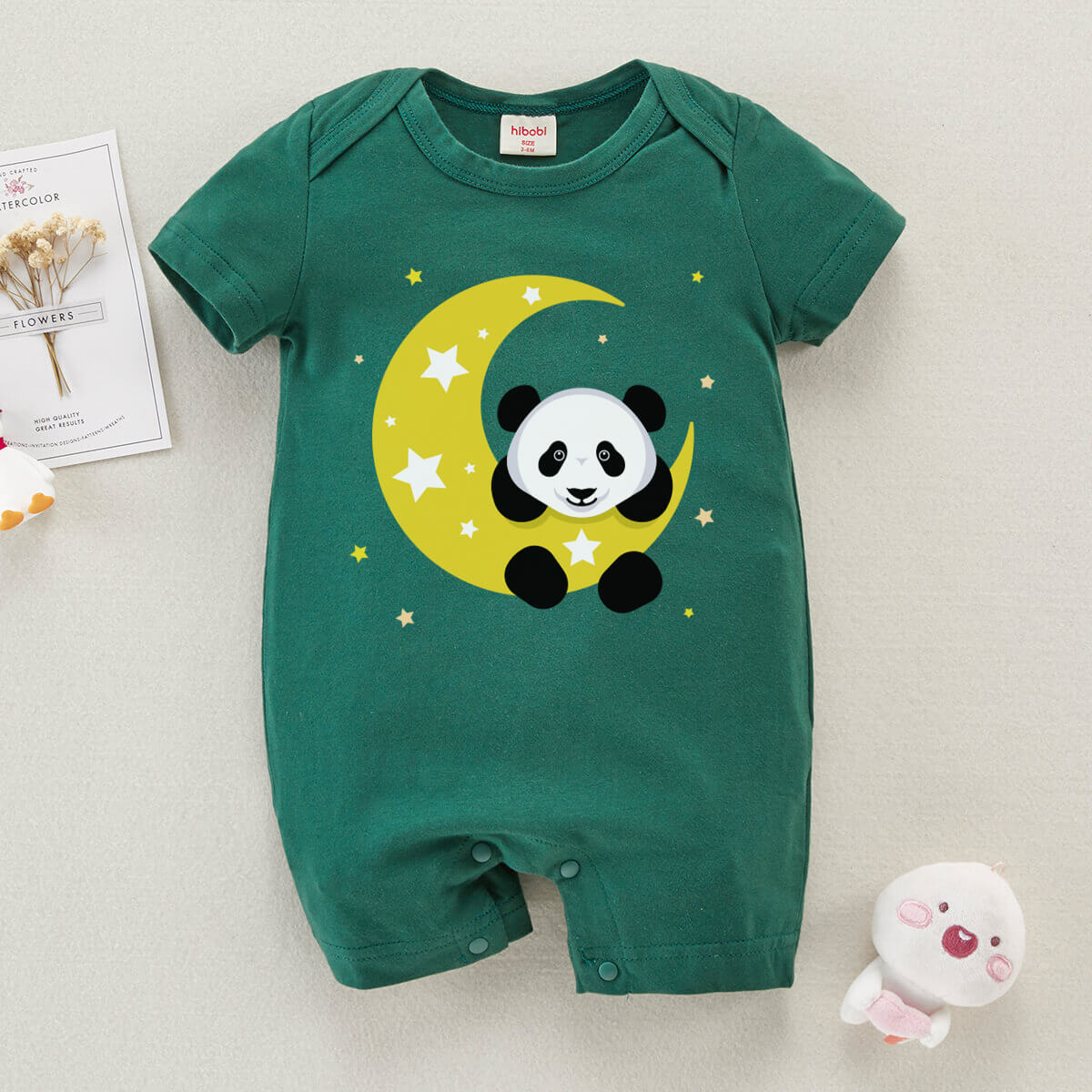 Baby Cute Panda Print Short Sleeve Cotton Bodysuit Wholesale