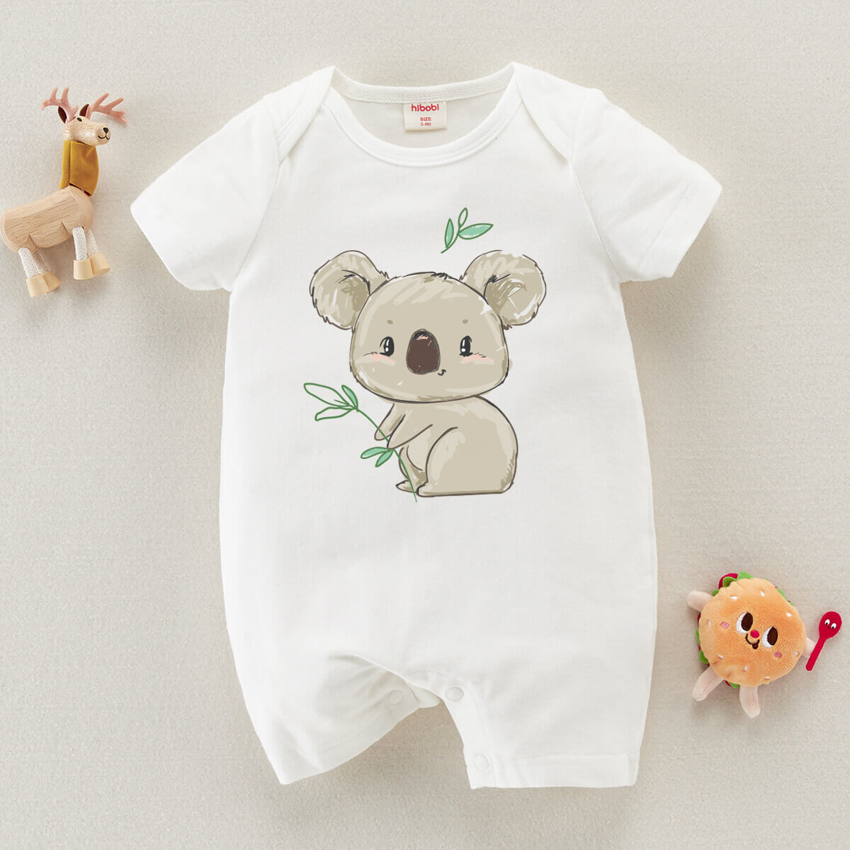 Baby Girl Cute Koala Print Short Sleeve Cotton Bodysuit Wholesale
