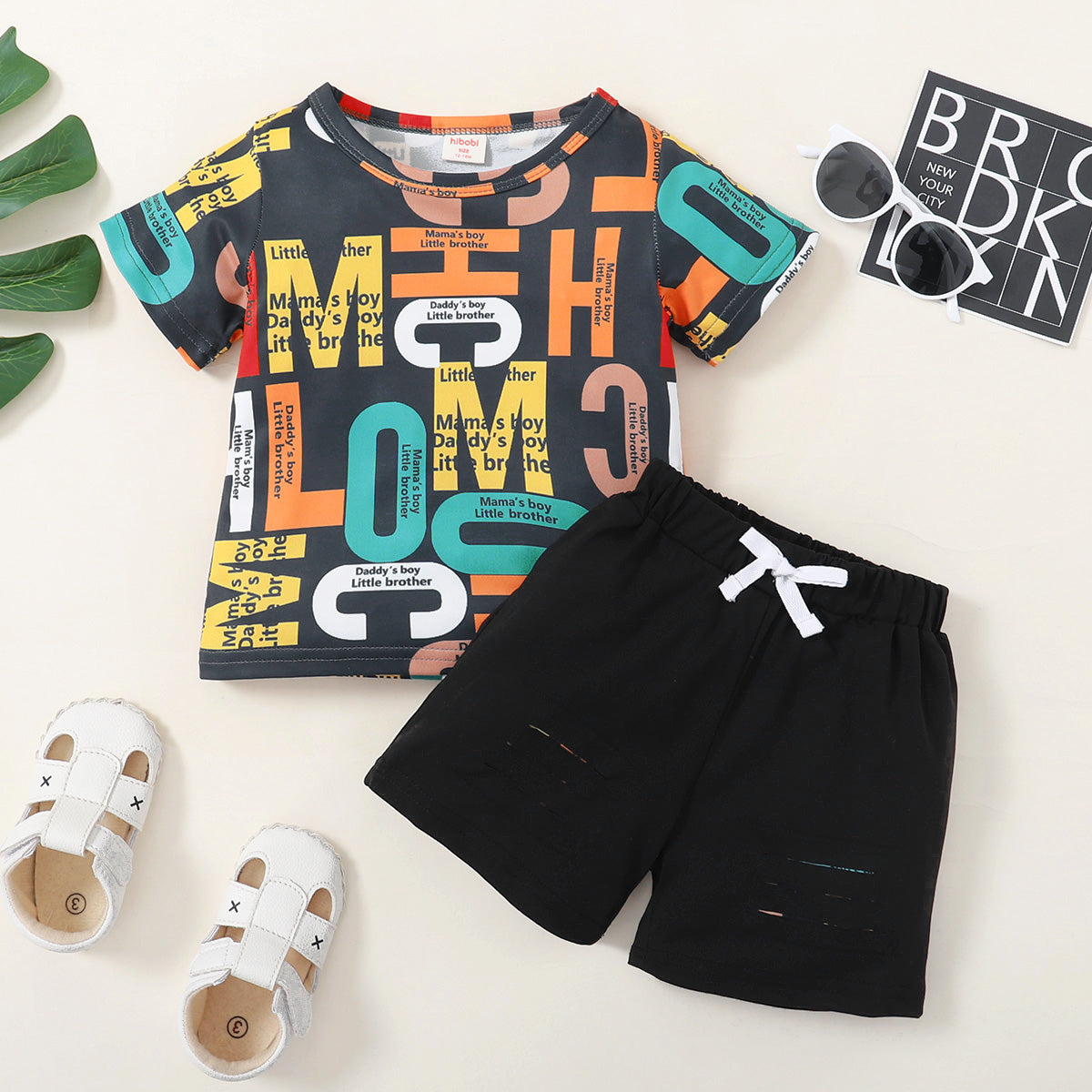Toddler Boy Polyester Letter Freehand Sketch Top & Pants Suit Wholesale