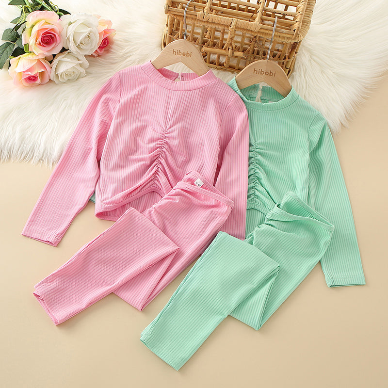 Kids Girls Solid Gathered T-shirt & Pants Set Wholesale