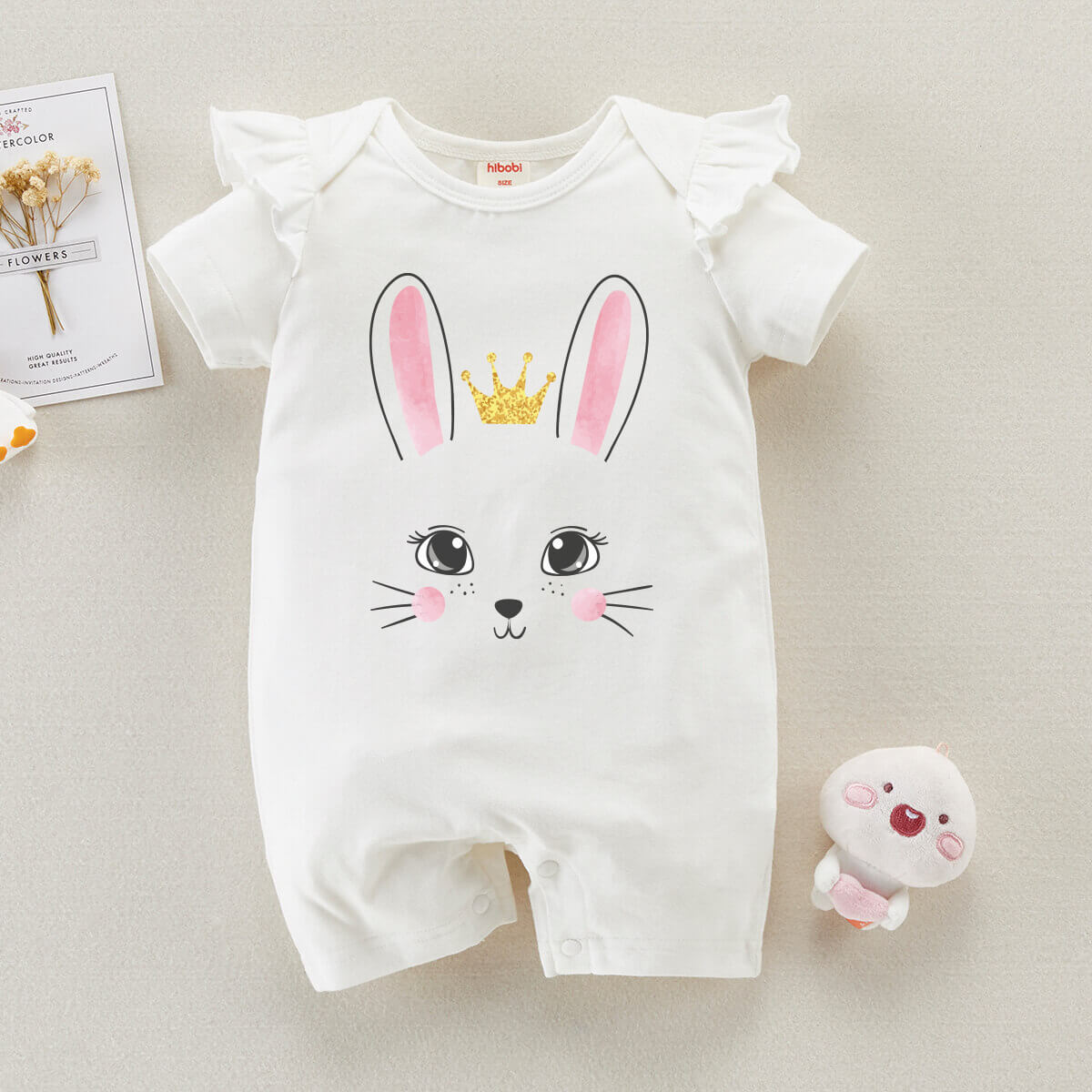 Baby Cute Rabbit Print Short Sleeve Cotton Bodysuit Wholesale