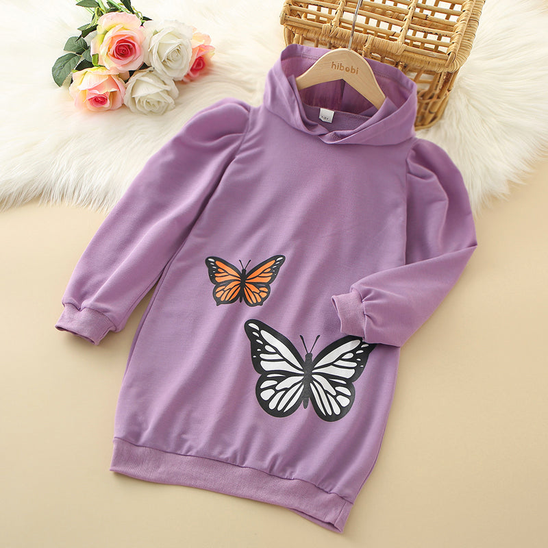 Kids Girls Butterfly Print Gigot Sleeve Sweatshirt Dress Wholesale