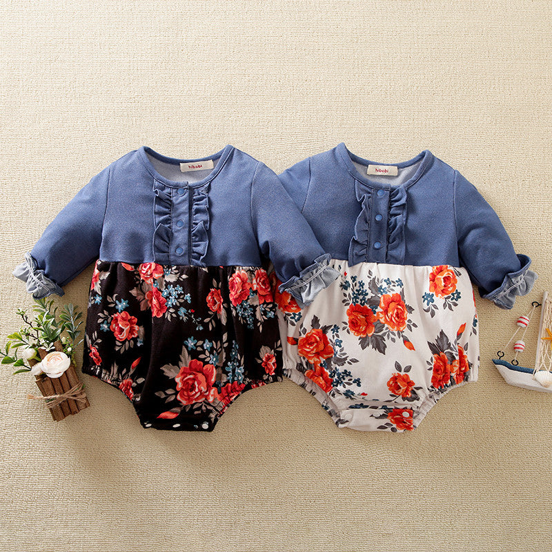 Baby Girl Ruffle Floral Splicing Bodysuit Wholesale
