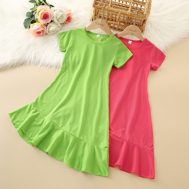 Kids Girls Solid Ruffle Trim Dress Wholesale