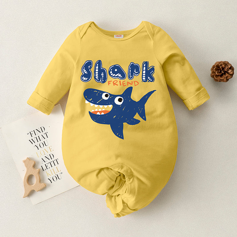 Baby Solid Shark Print Long Sleeve Jumpsuit Wholesale