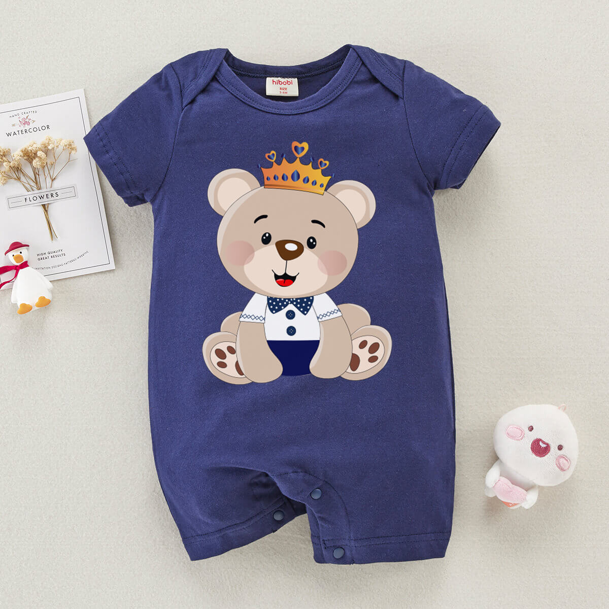 Baby Cute Bear Print Short Sleeve Cotton Bodysuit Wholesale