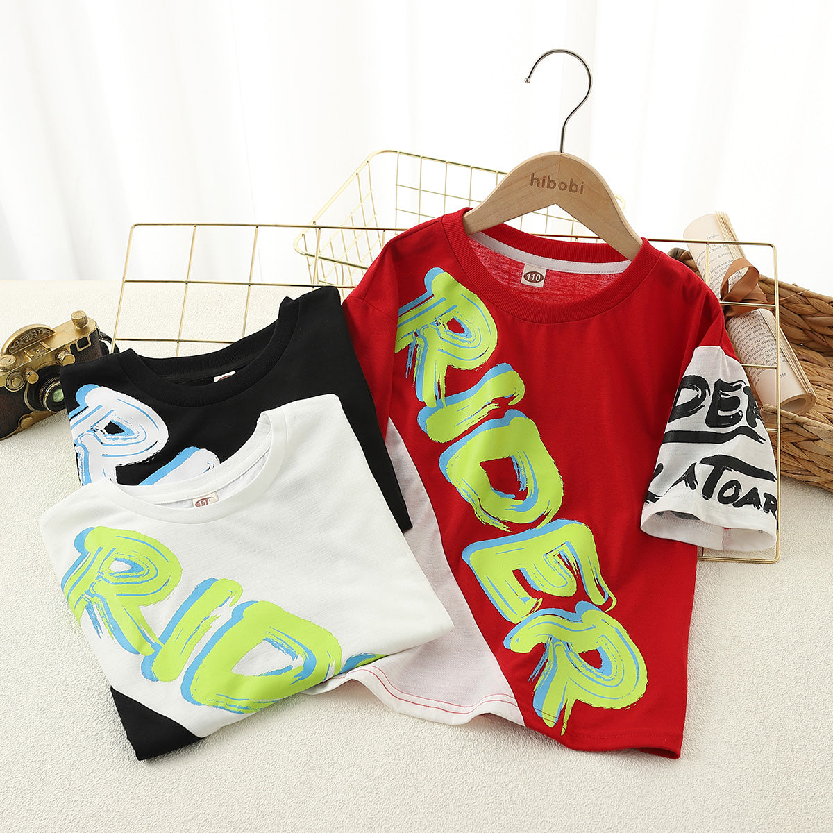 Kids Boys Letter Print Colour Block Pullover T-shirt Wholesale