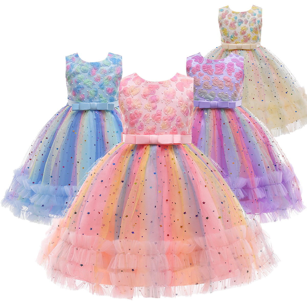 Kid Girl Rainbow Three-Dimensional Flowers Formal Dress Wholesale