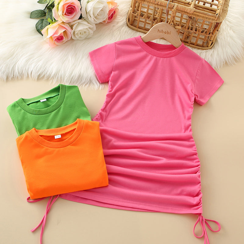 Kids Girls Solid Drawstring Dress Wholesale