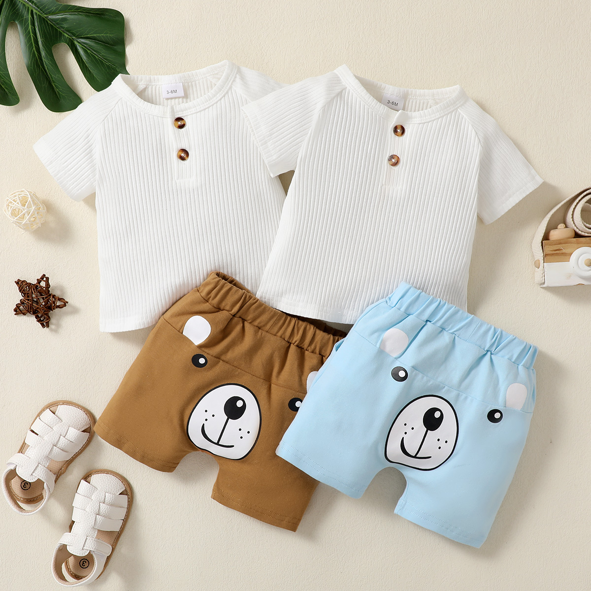 Baby Boy Solid Color T-Shirt & Cute Bear Shorts Wholesale