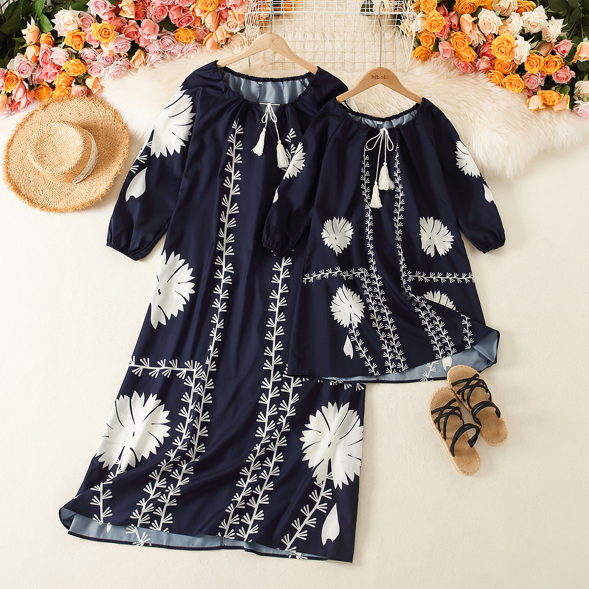 Elegant Floral Print Long Sleeve Dress for Mom and Me Wholesale