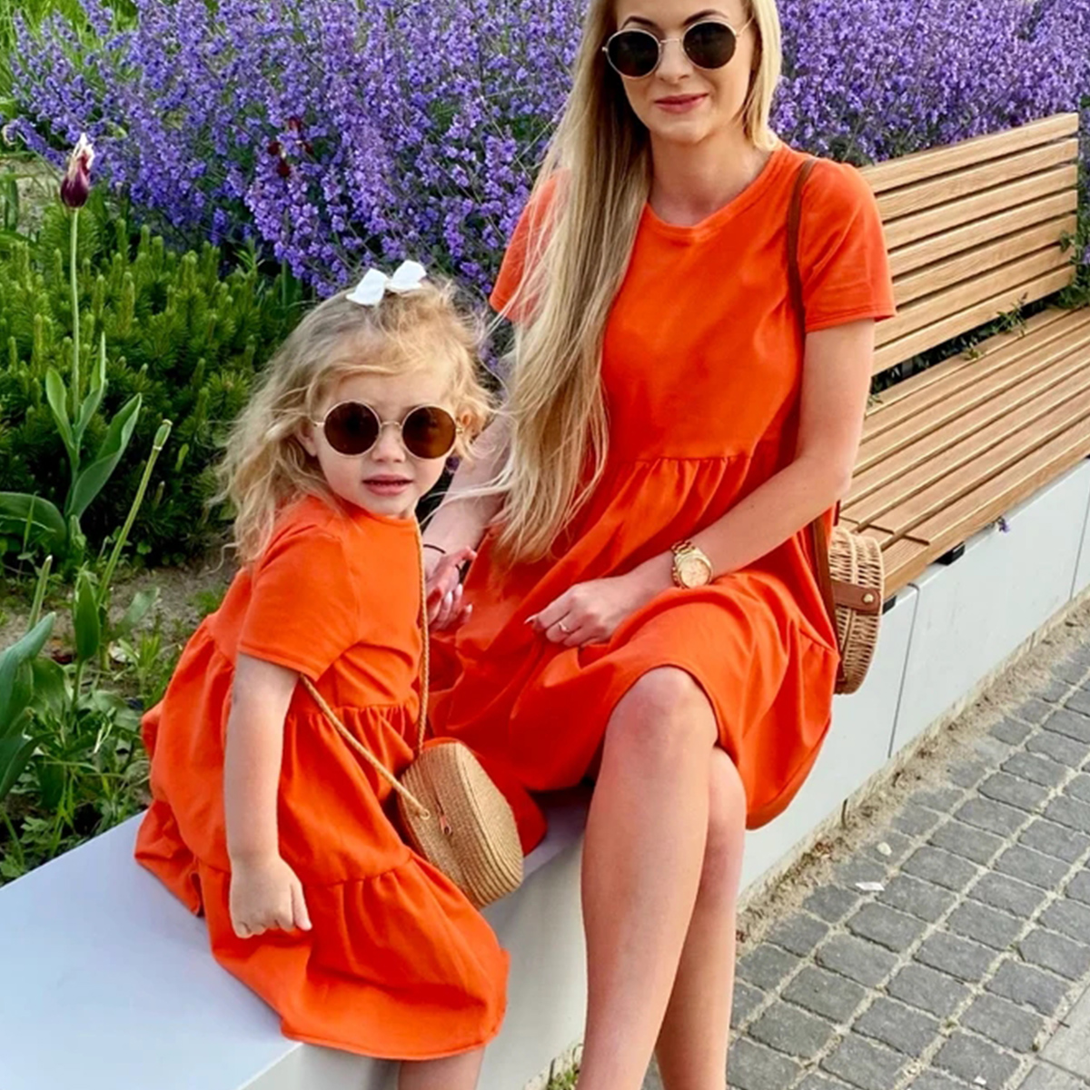 Causal Solid Color Short Sleeve Long Dress for Mom and Me Wholesale