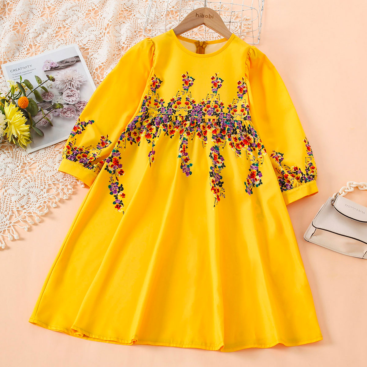 Kids Girls Floral Long-sleeve Grace Princess Dress Wholesale