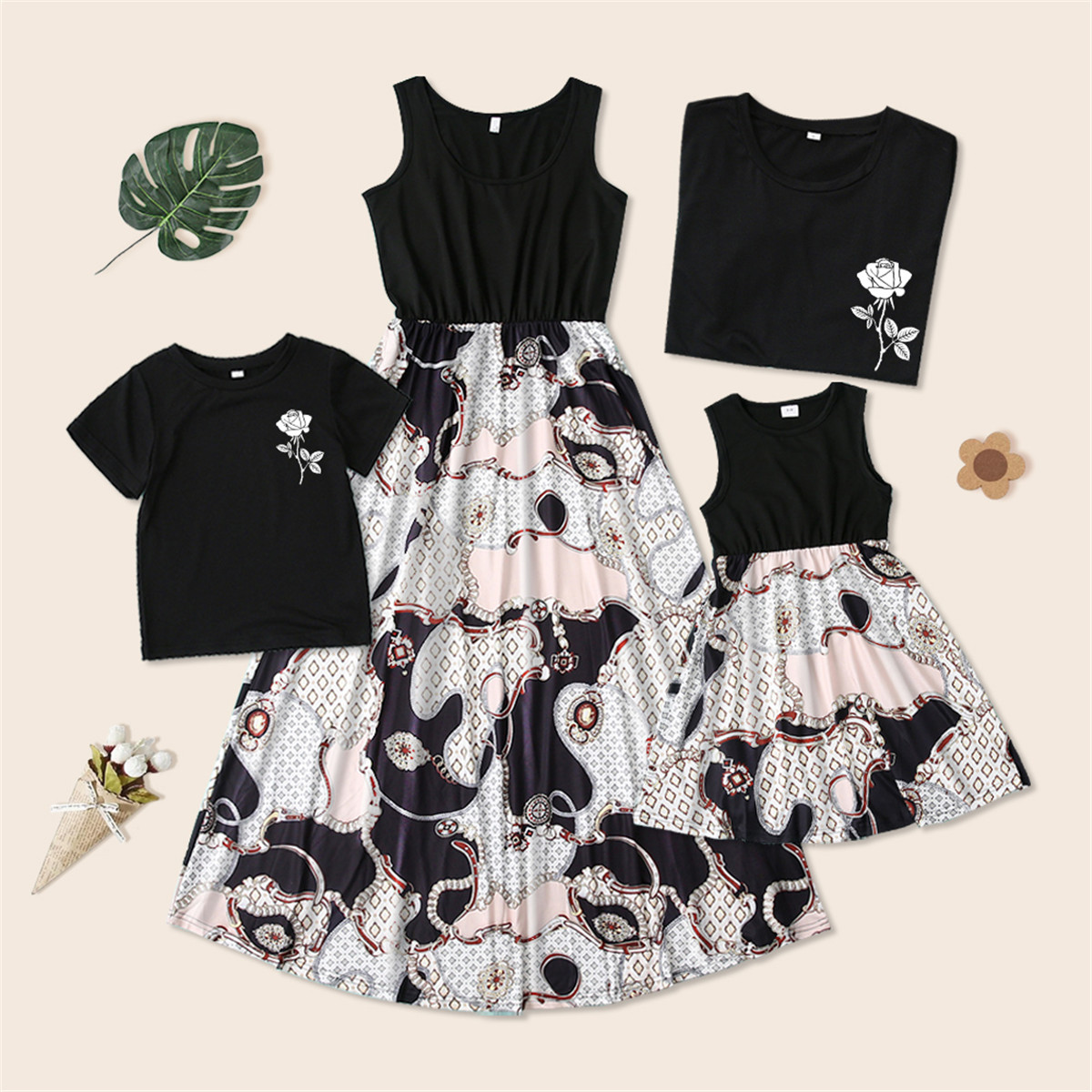 Family Matching Geometric Pattern Print Sleeveless Dress and T-shirt Wholesale