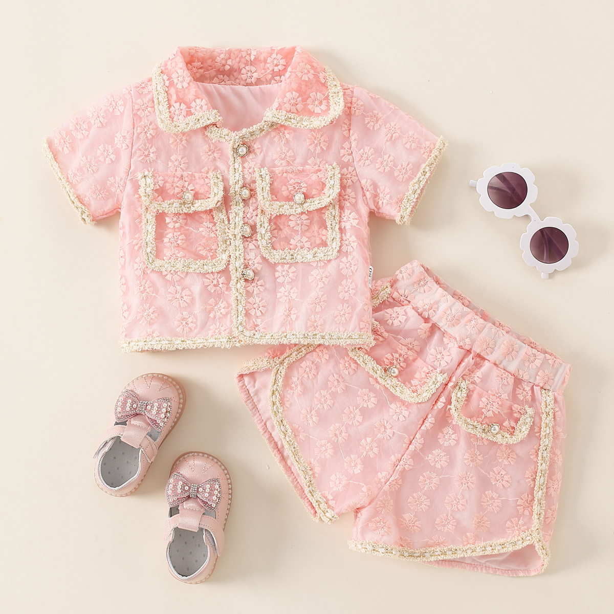 Toddler Girls Lapel Sweet Solid Top & Shorts Wholesale