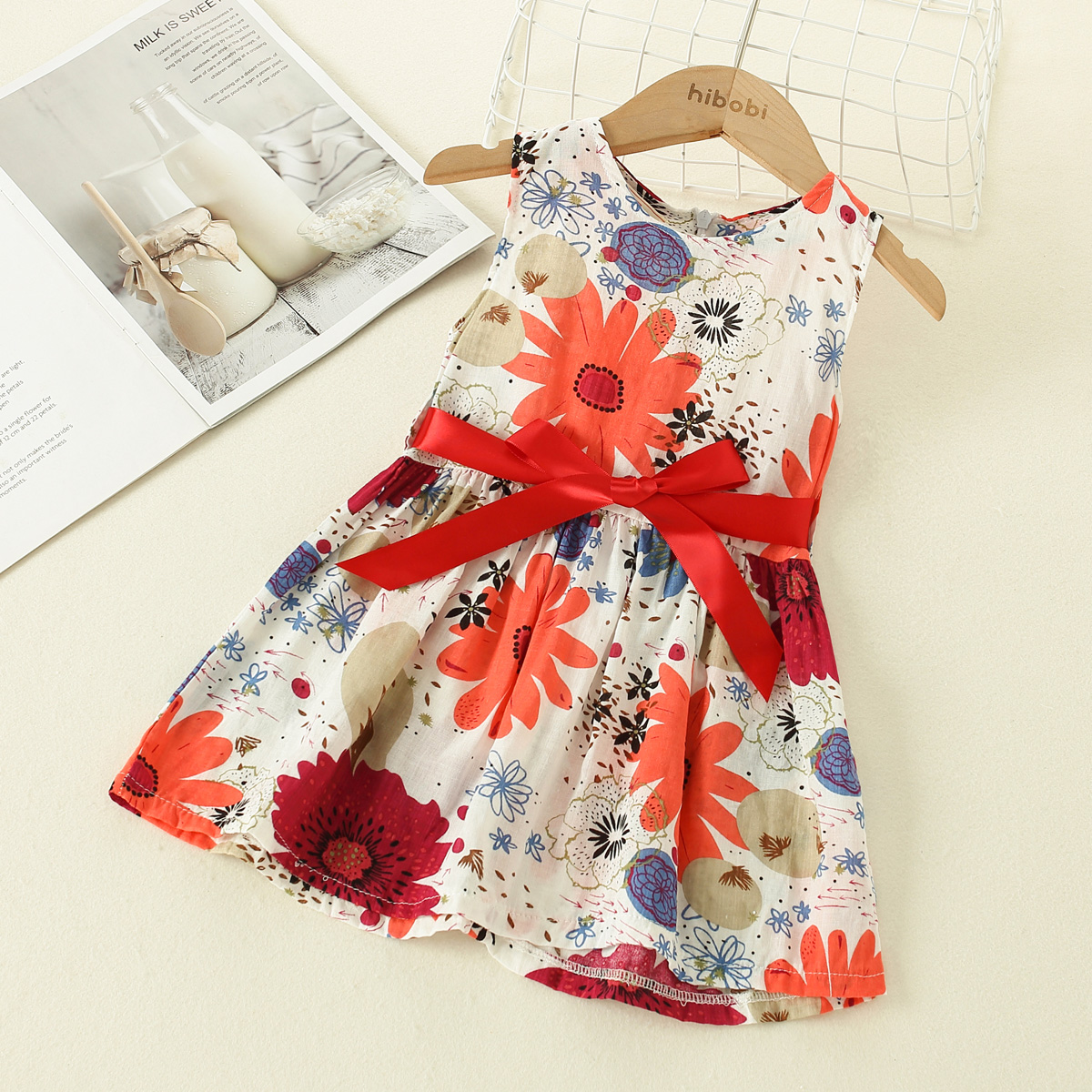 Baby Girl Beautiful Smocking Floral Print Dress with Headband Wholesale