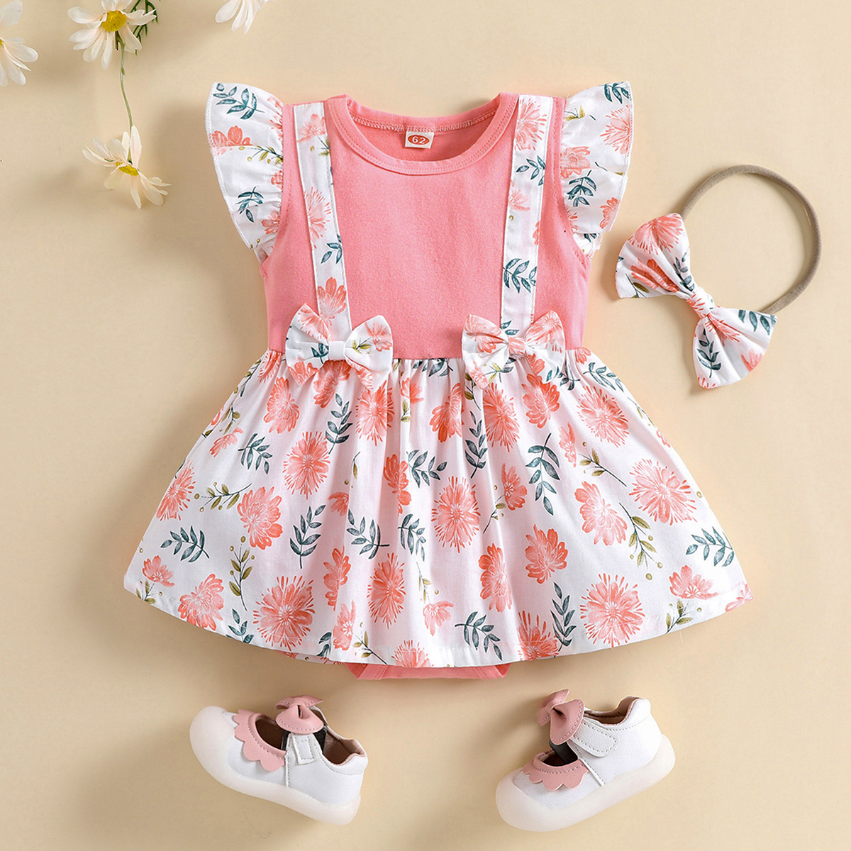 Baby Girl Beautiful Patchwork Floral Ruffle Sleeve Bodysuit with Headband Wholesale