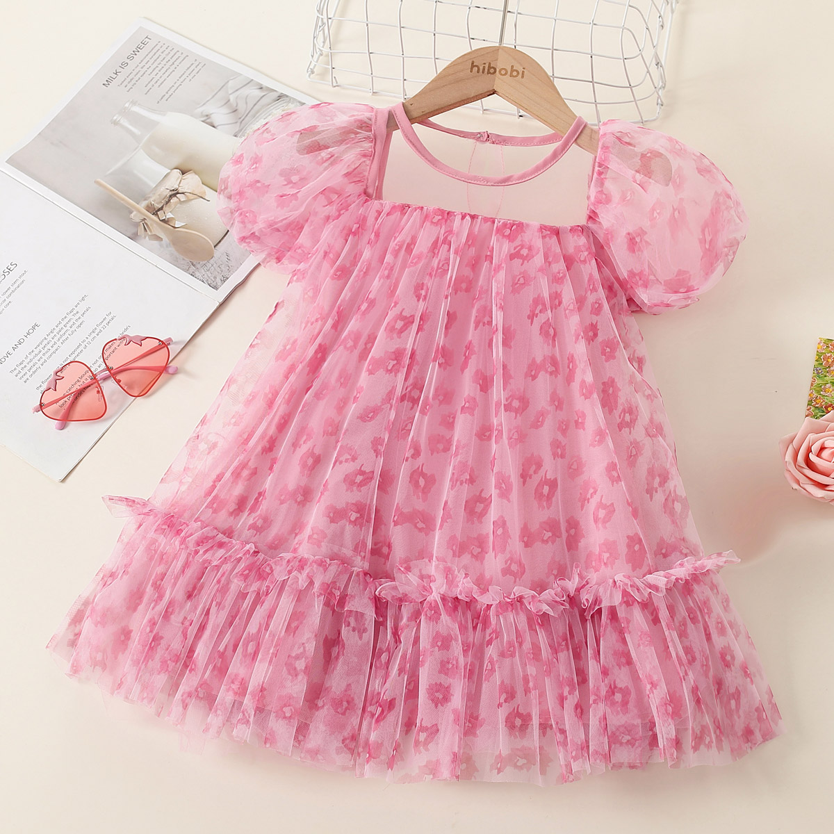 Toddler Girls Sweet Floral Layered Skirt Mesh Dress Wholesale