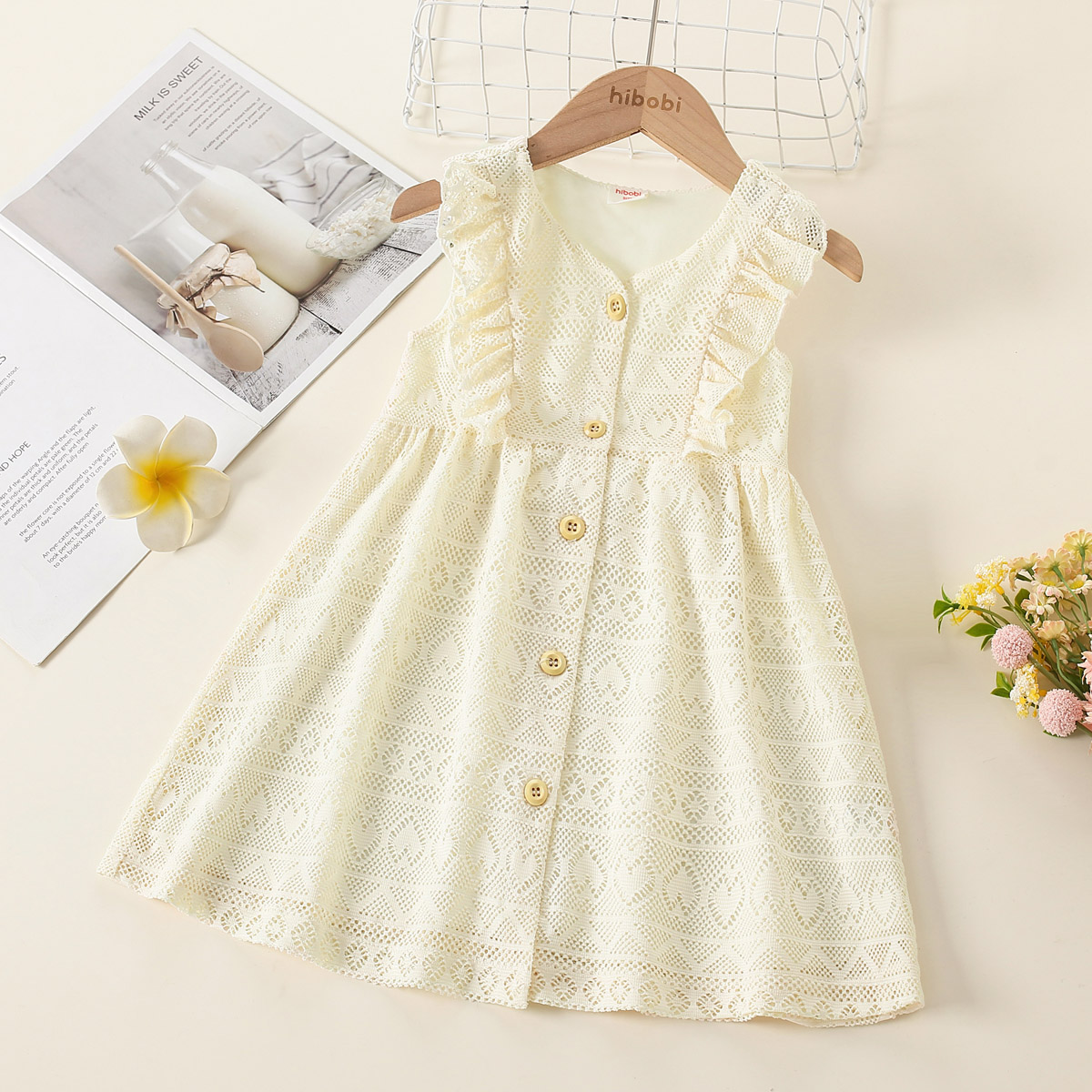 Toddler Girl Lace Hollowed Ruffles Dress Wholesale
