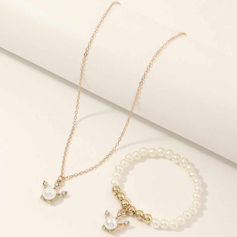 Girl Crown Decor Necklace & Pearl Bracelet Set Wholesale