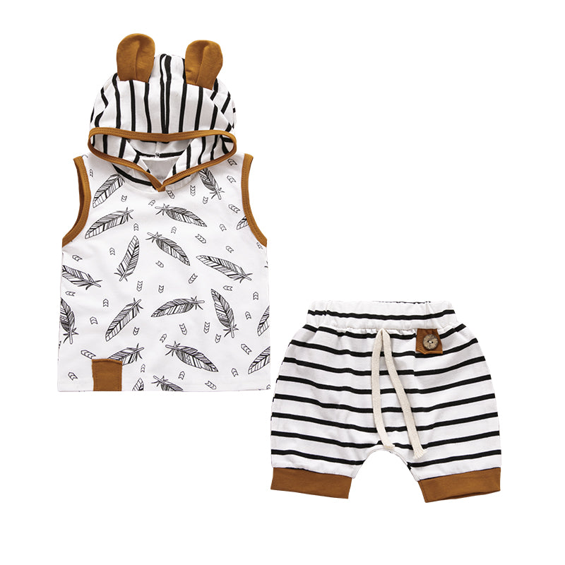 2-Piece Floral Hooded Short-Sleeve Tee and Striped Shorts Wholesale