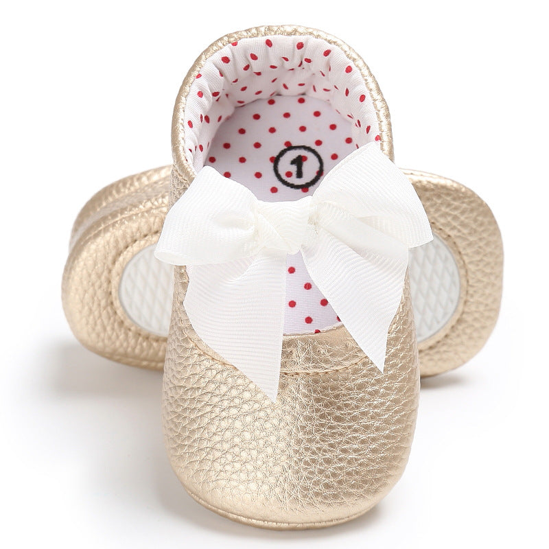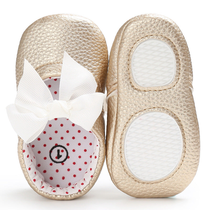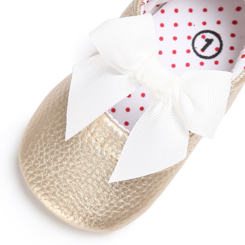 Baby Girl's Sweet Golden Bownot Decoration Prewalker Shoes Wholesale