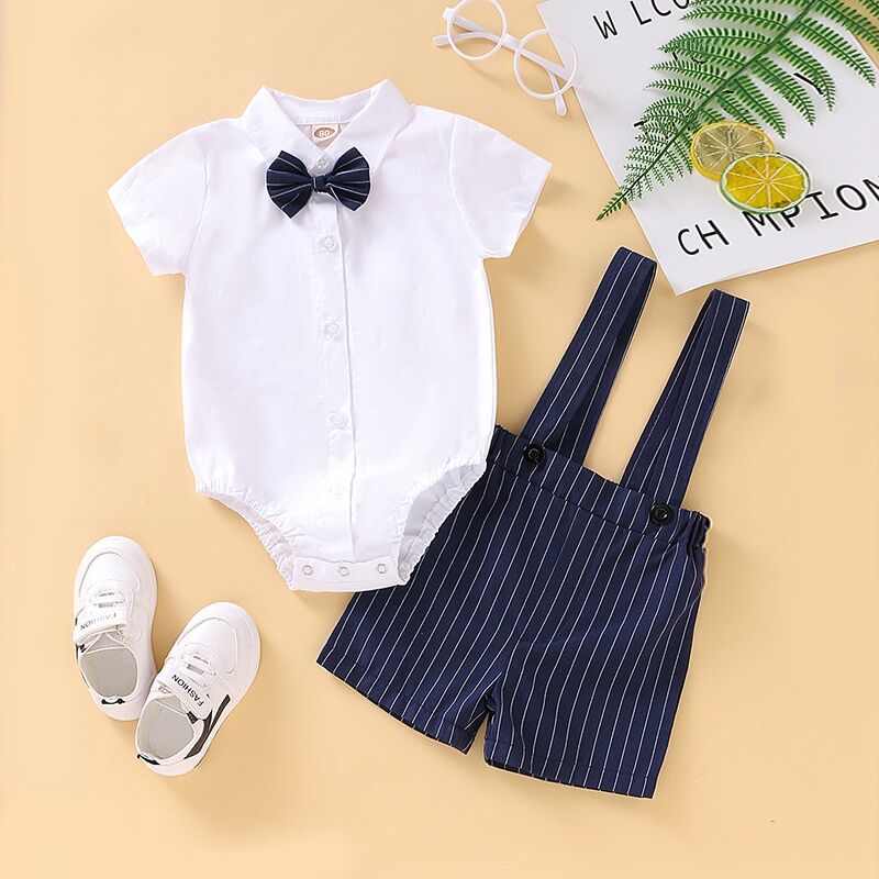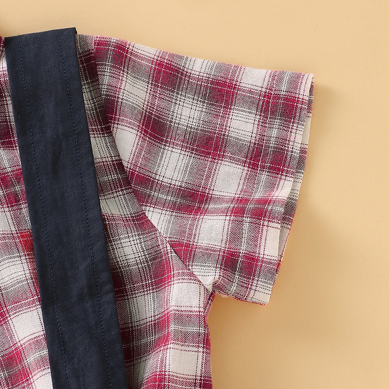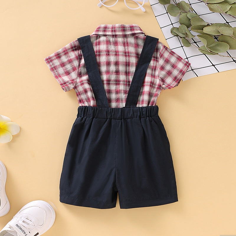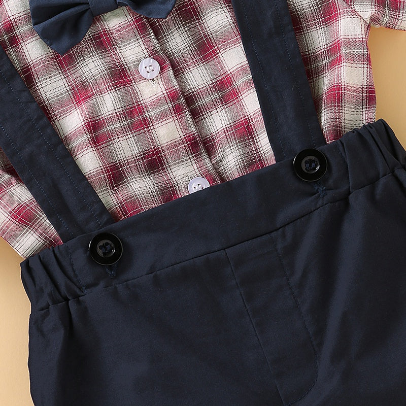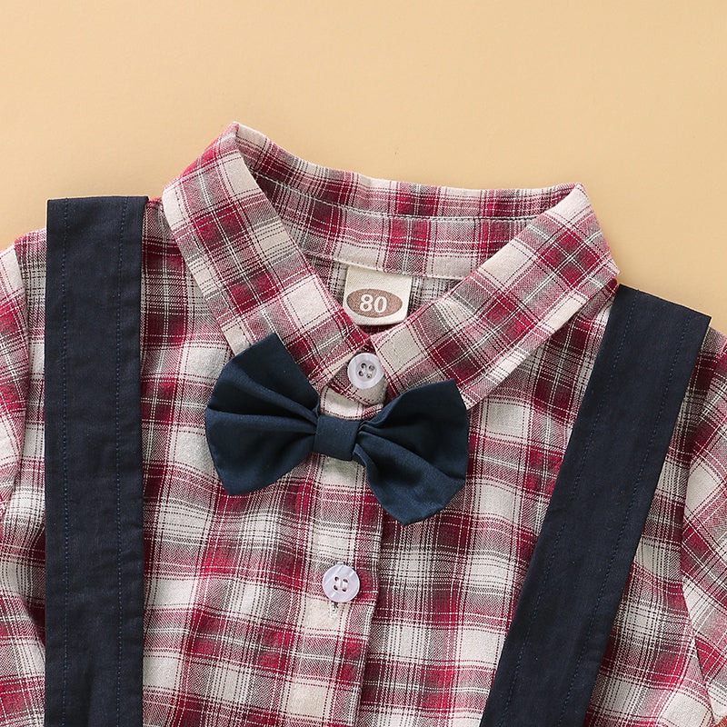 2-Piece Plaid Bowknot Decoration Babysuit and Overalls Wholesale