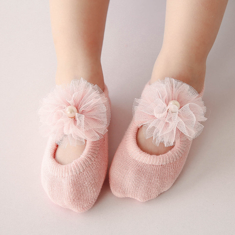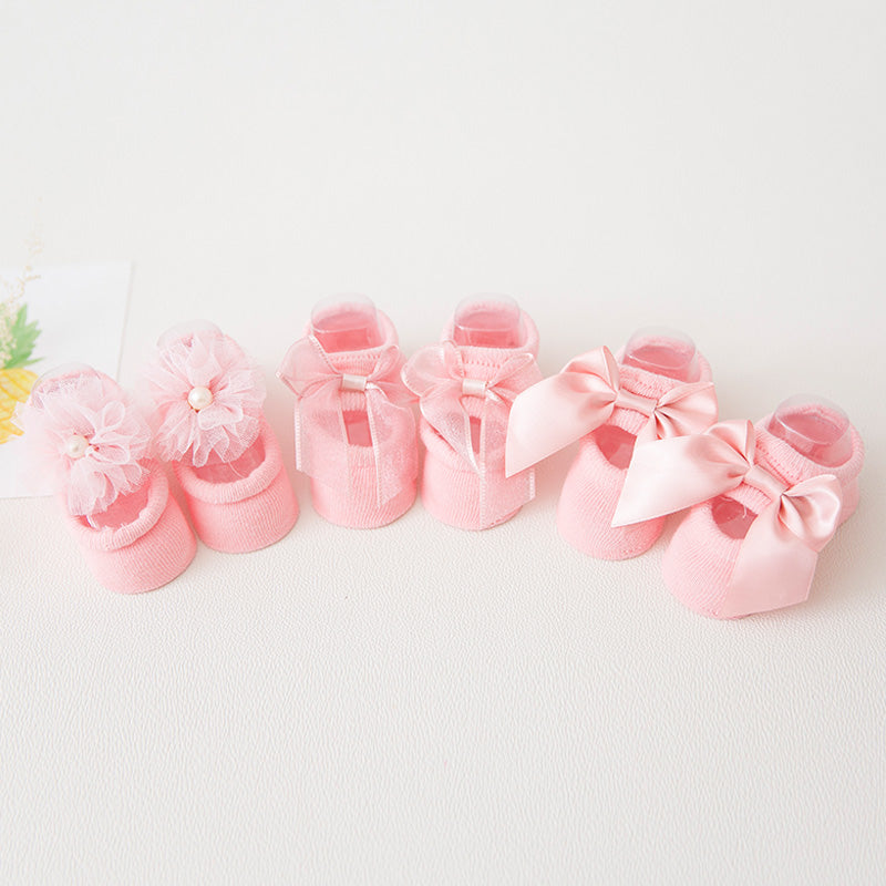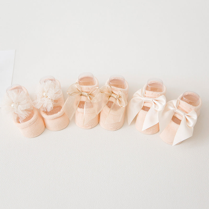 3-piece Cotton Bowknot Decor Antiskid Baby Socks Wholesale