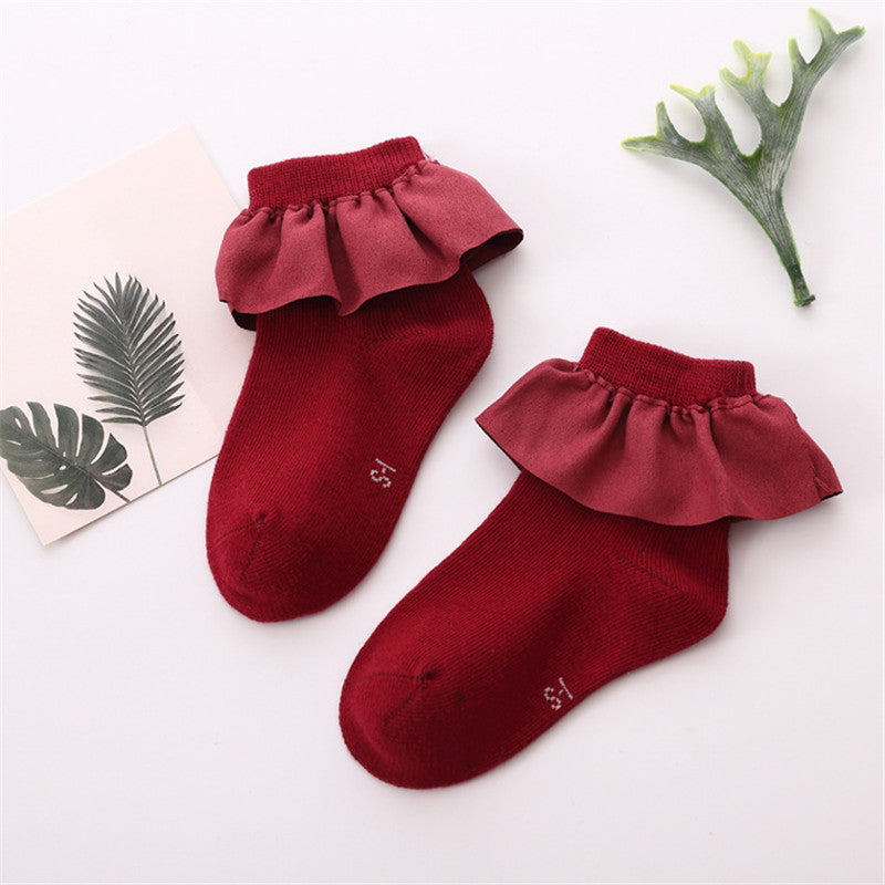 Toddler Girl Solid Color Ruffle Decor Socks Wholesale
