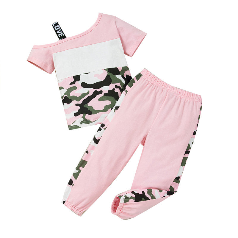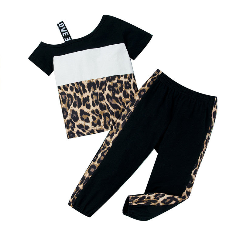 Toddler Girl Color-block Leopard One-shoulder Top & Pants Wholesale