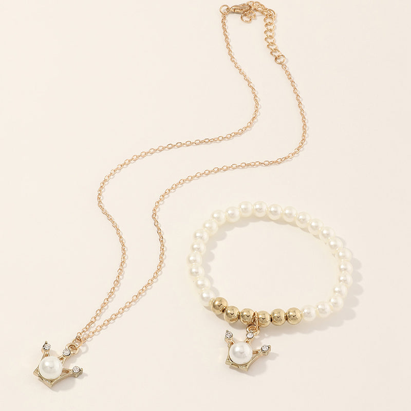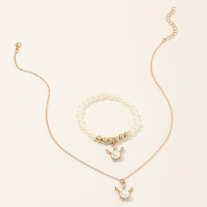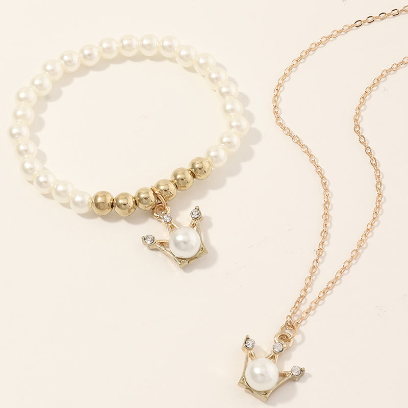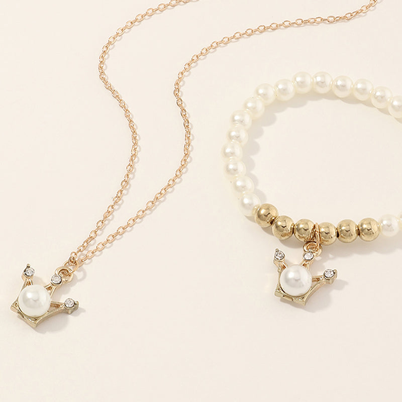 Girl Crown Decor Necklace & Pearl Bracelet Set Wholesale