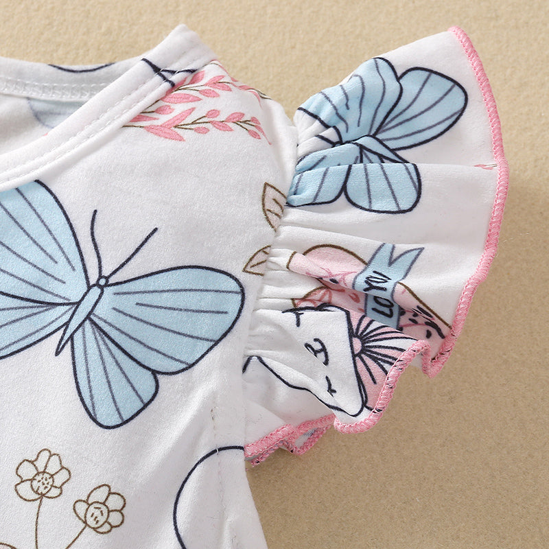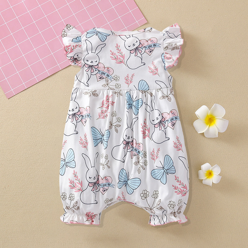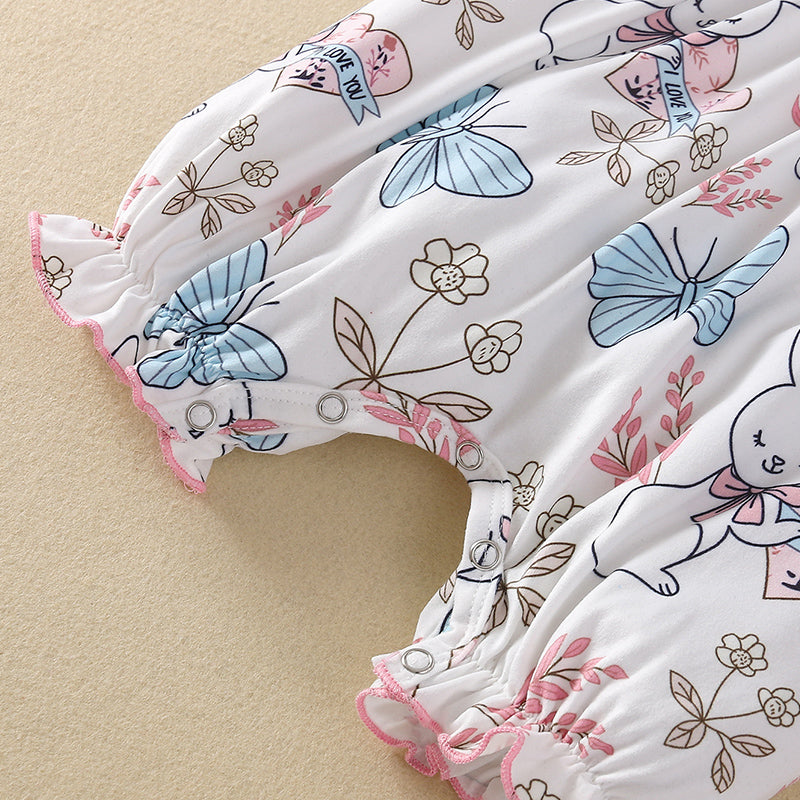 Baby Girl Butterfly Print Cartoon Rabbit Pattern Bodysuit Wholesale