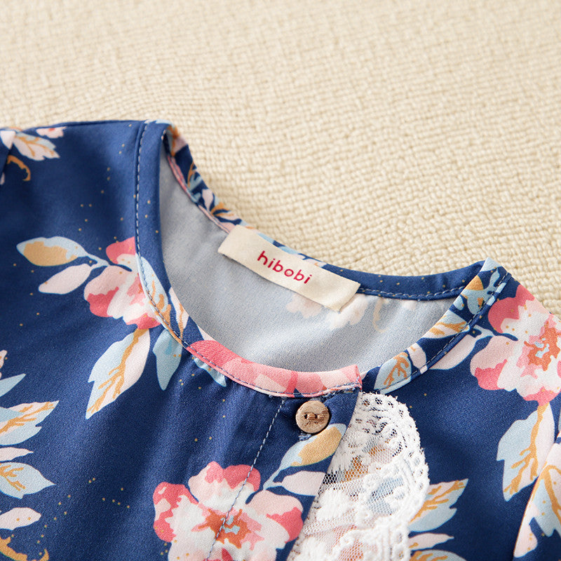 Baby Girl Floral Lace Ruffle Long sleeve Jumpsuit Wholesale