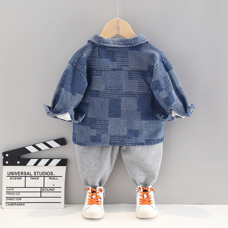 Toddler Boy Bear Pattern T-shirt & Plaid Print Coat & Pants Wholesale