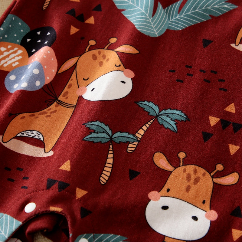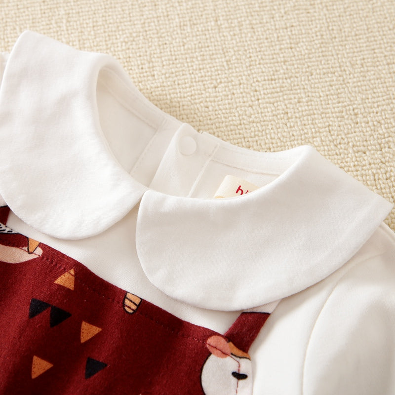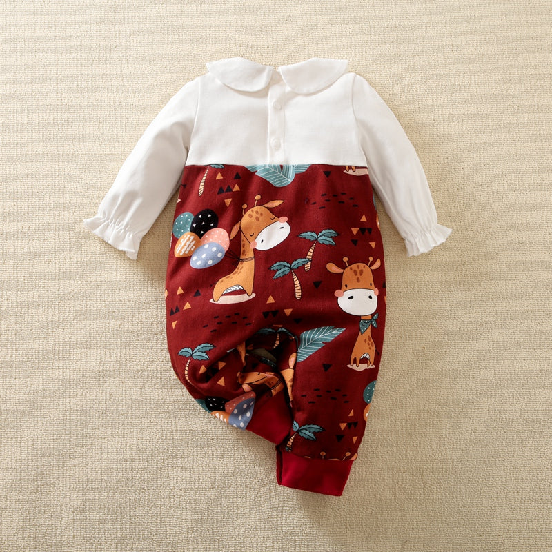 Baby Girl Doll Collar Animal Deer Print Long Sleeve Jumpsuit Wholesale
