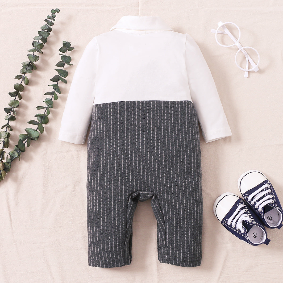Baby Boy Gentleman Color-block Bow Tie Stripe Long Sleeve Jumpsuit Wholesale
