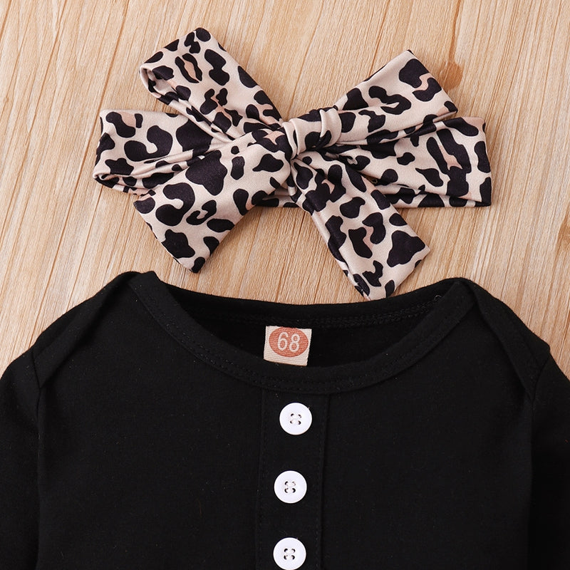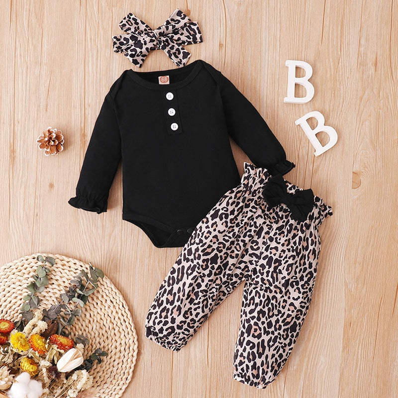 Baby Girl Long Sleeve Romper Leopard Pants Three-piece Wholesale