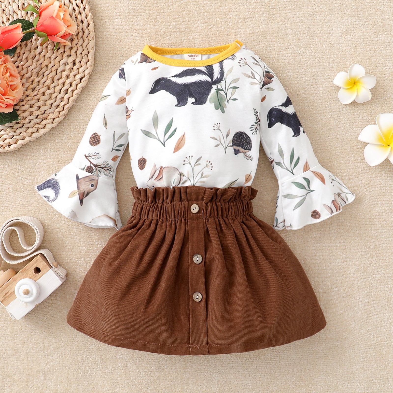hibobi Baby Girl Animal Print Long Sleeve Romper Dress Set Wholesale