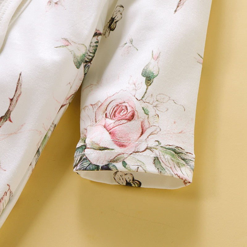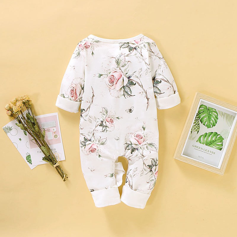 Baby Girl Sweet Ruffle Floral Print Long Sleeve Jumpsuit Wholesale