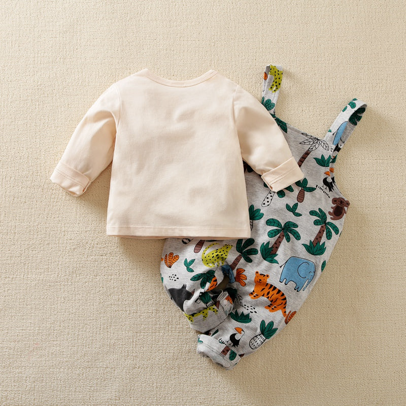 hibobi Baby Boy Long Sleeve Top Animal Print Bib Pant Two-piece Wholesale