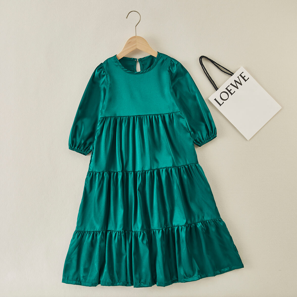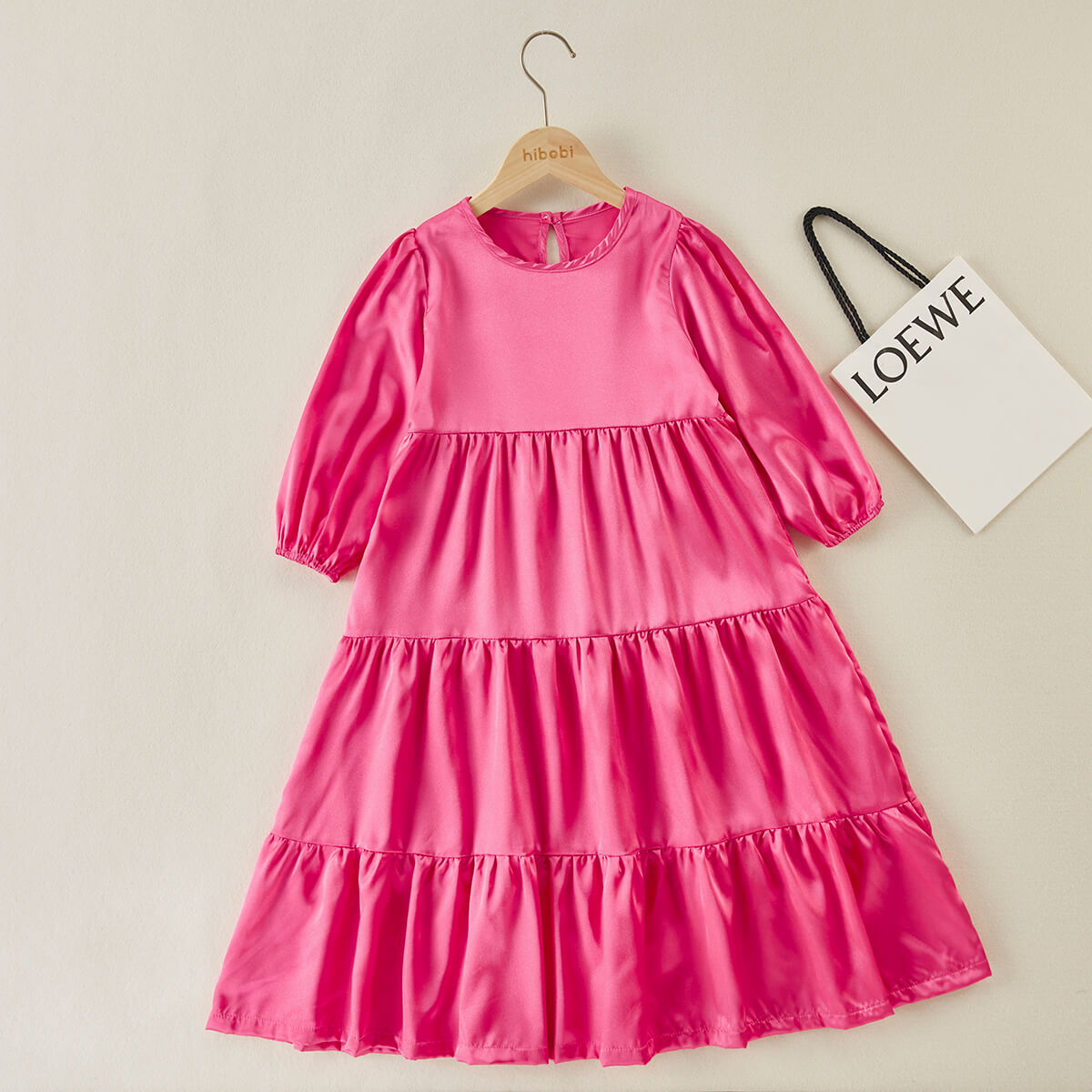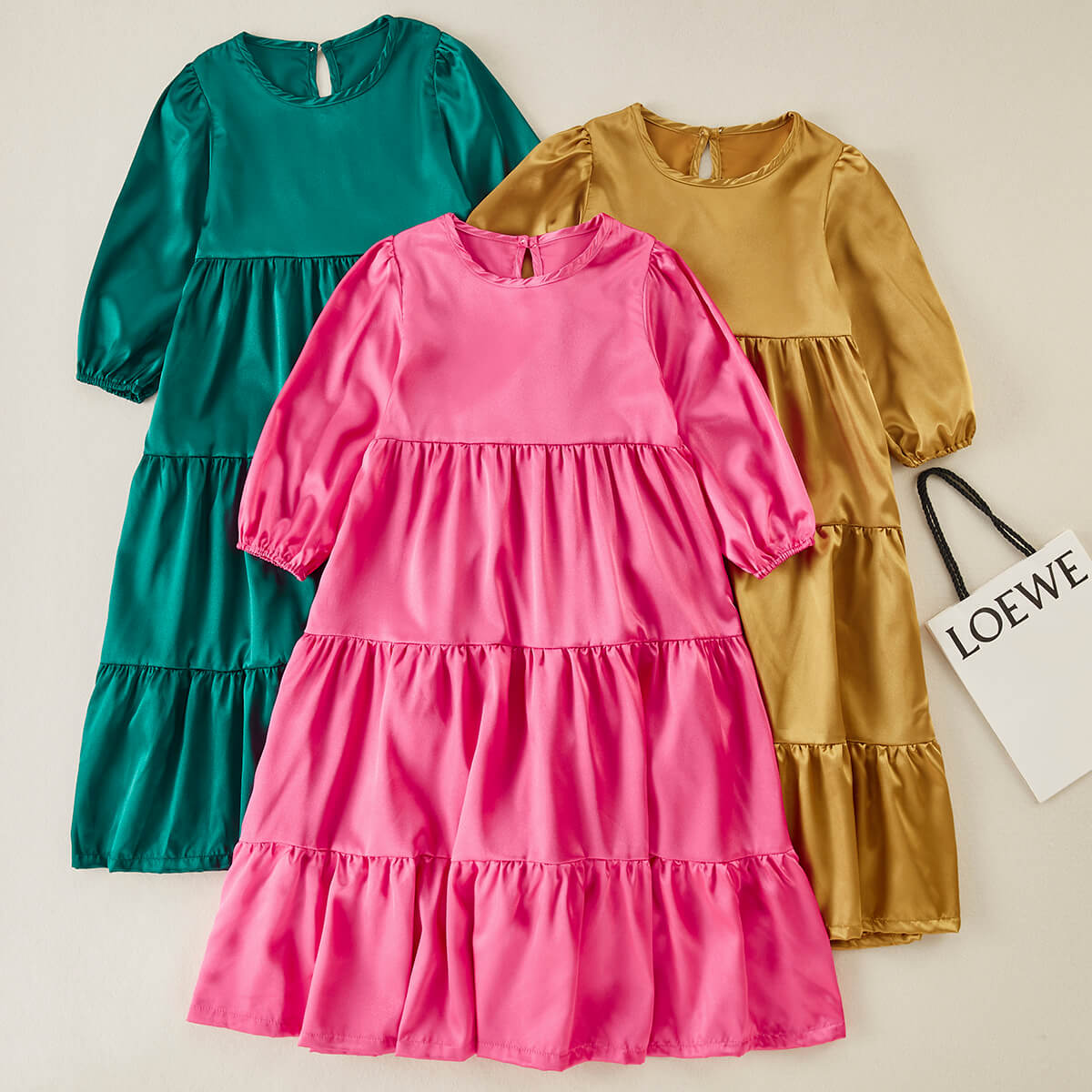 Kids Girls Lantern Sleeve Silk Smock Dress Wholesale