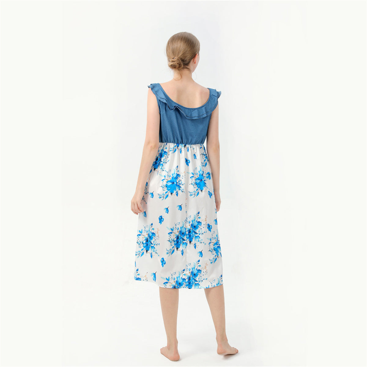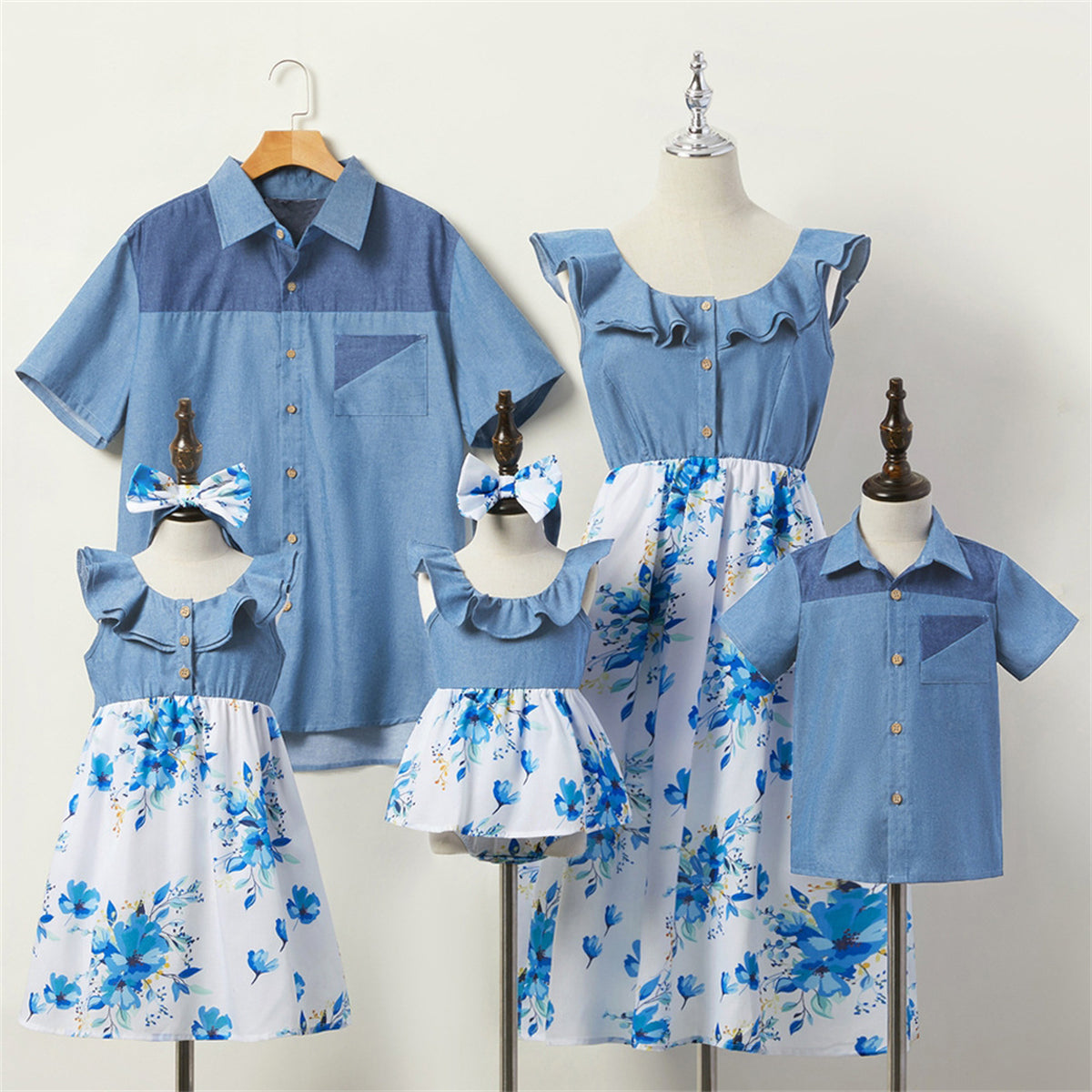Family Matching Floral Print Sleeveless Dresses and Shirts Sets Wholesale
