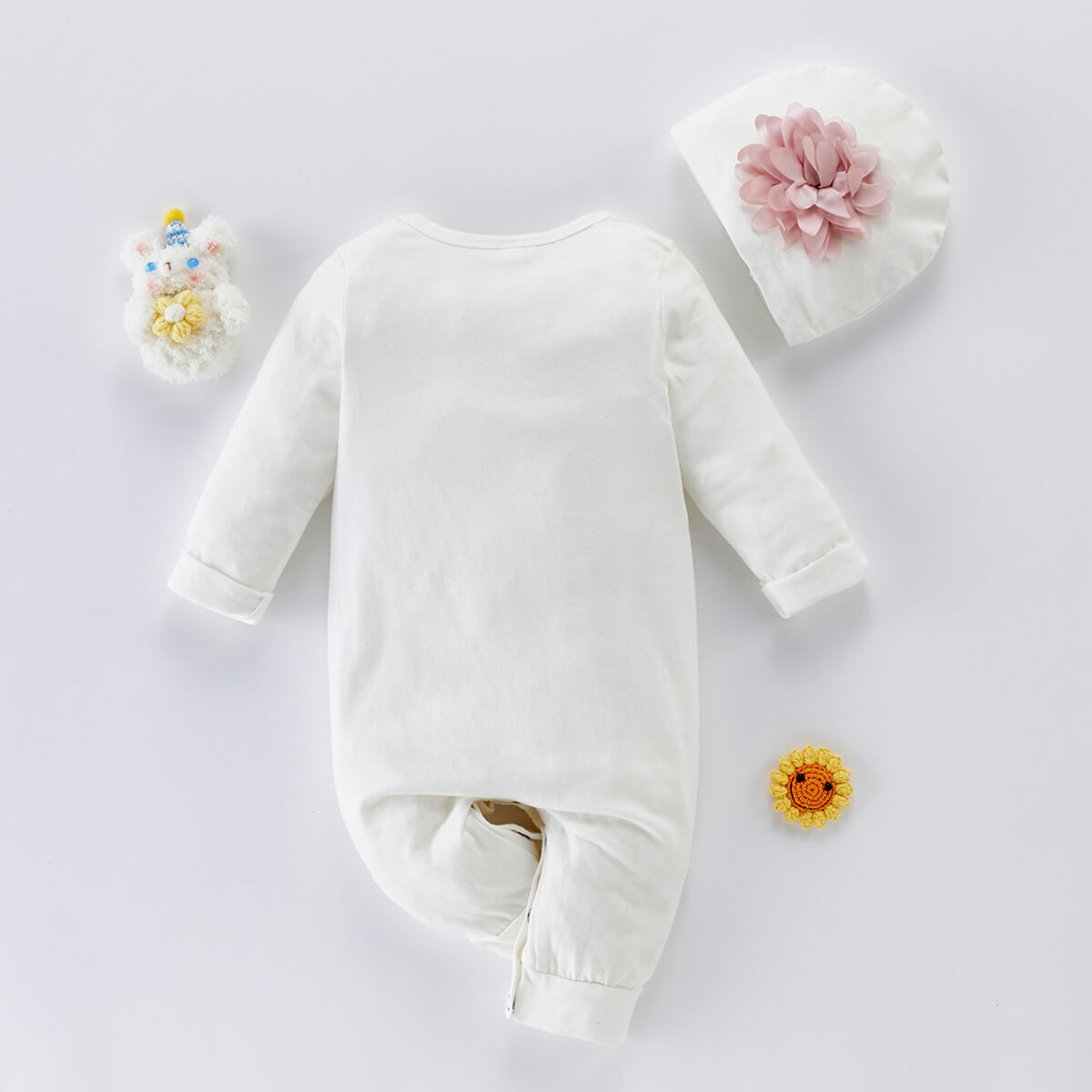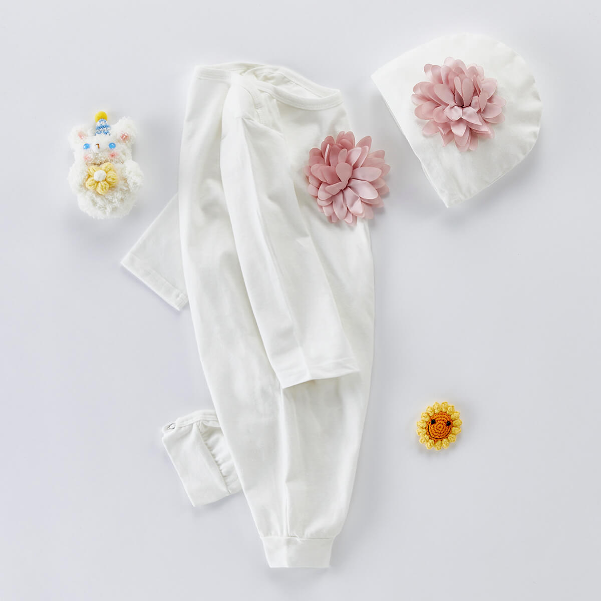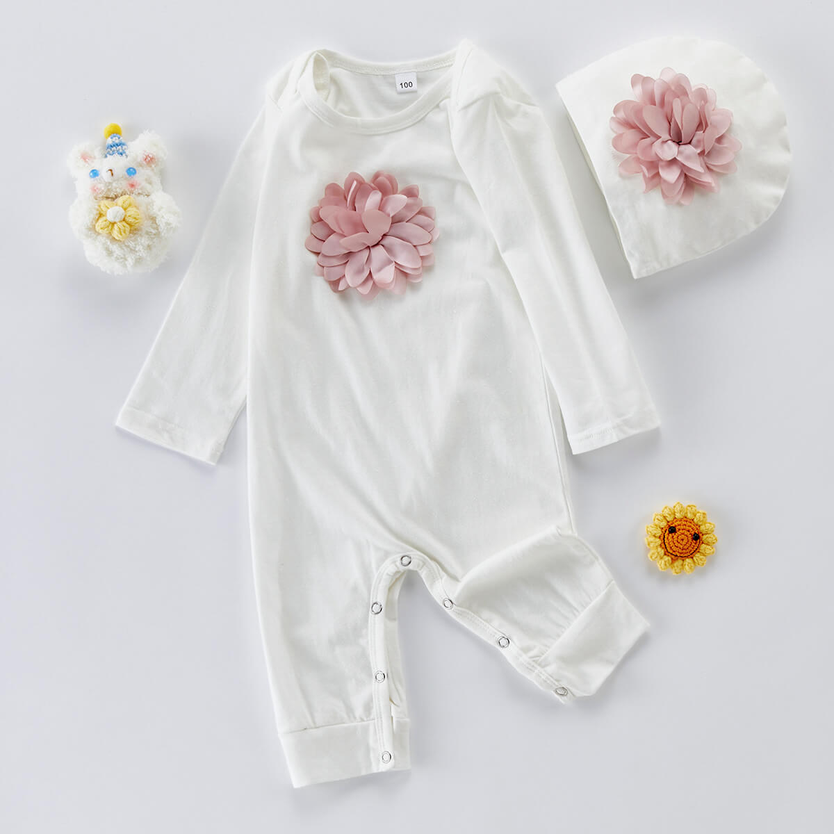 Baby Girl Sweet Three-dimensional Flower Long Sleeve Jumpsuit Hat Two-piece Wholesale
