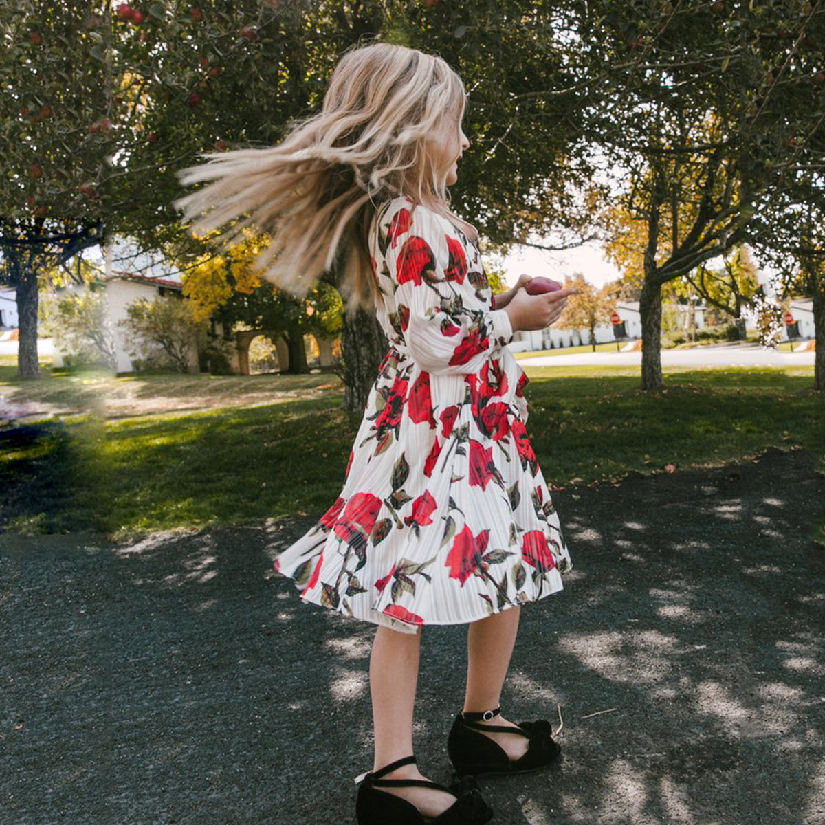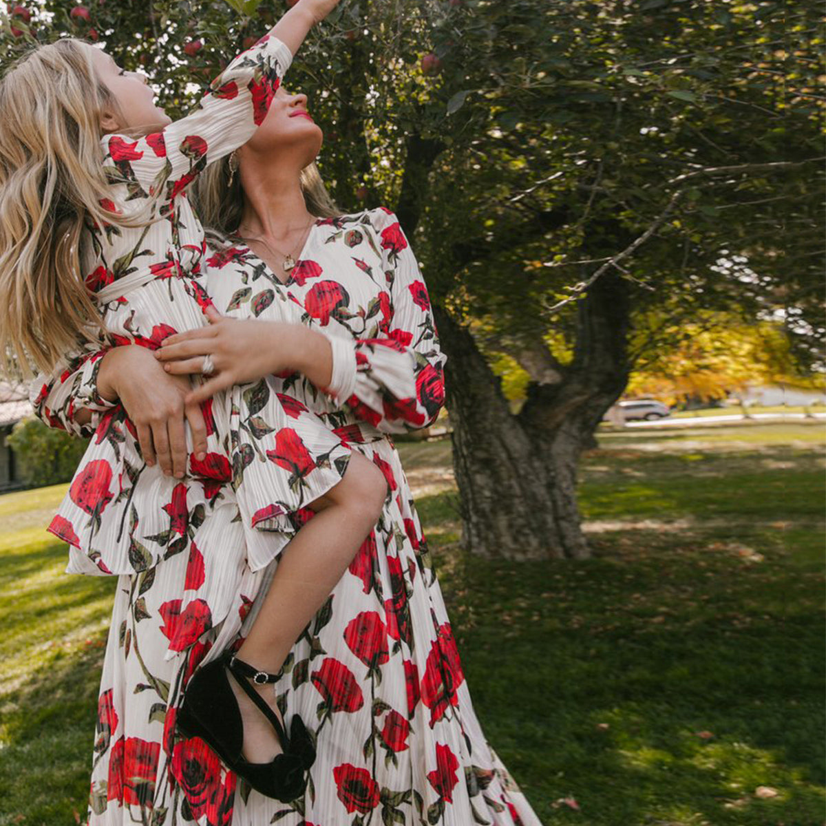 Floral Print Round Collar Long Sleeve Dress for Mom and Me Wholesale