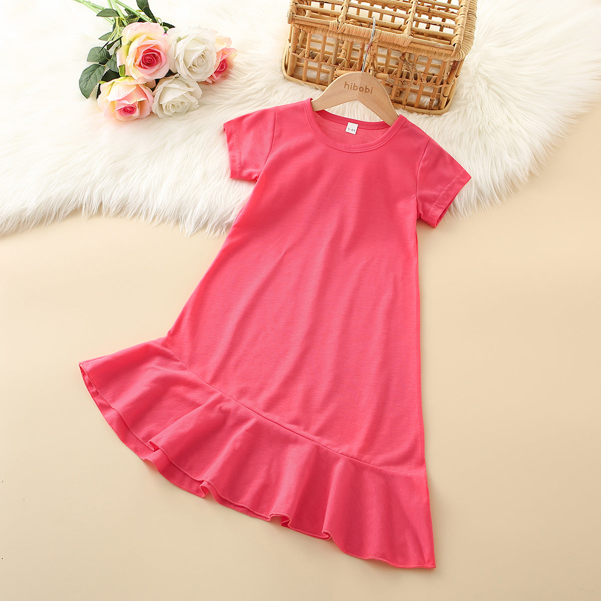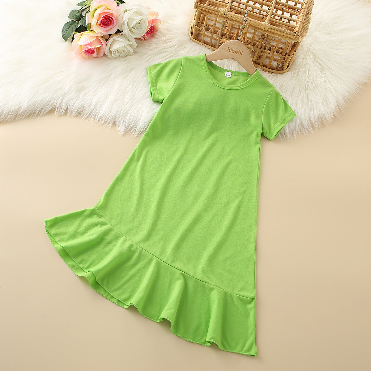 Kids Girls Solid Ruffle Trim Dress Wholesale