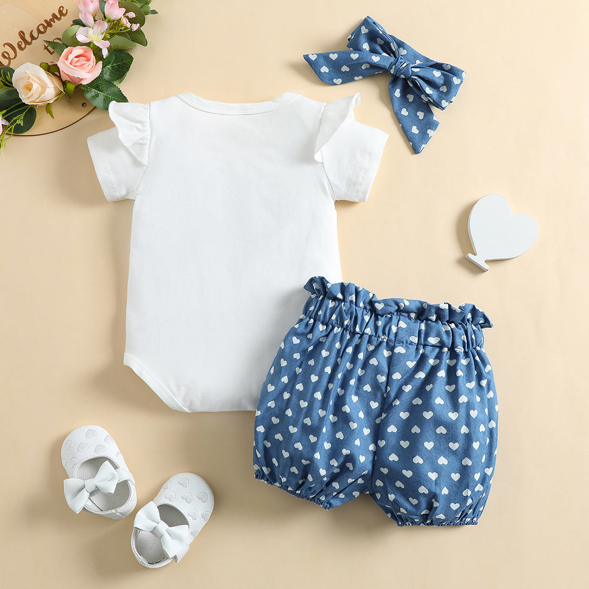 Baby Girl Valentine's Day Cute Heart-shaped Bodysuit Shorts Headband Three-piece Wholesale
