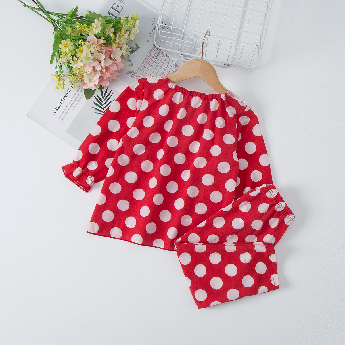 Toddler Girls Cotton Polka Dot Color-block Top & Pants Pajamas Sets Wholesale