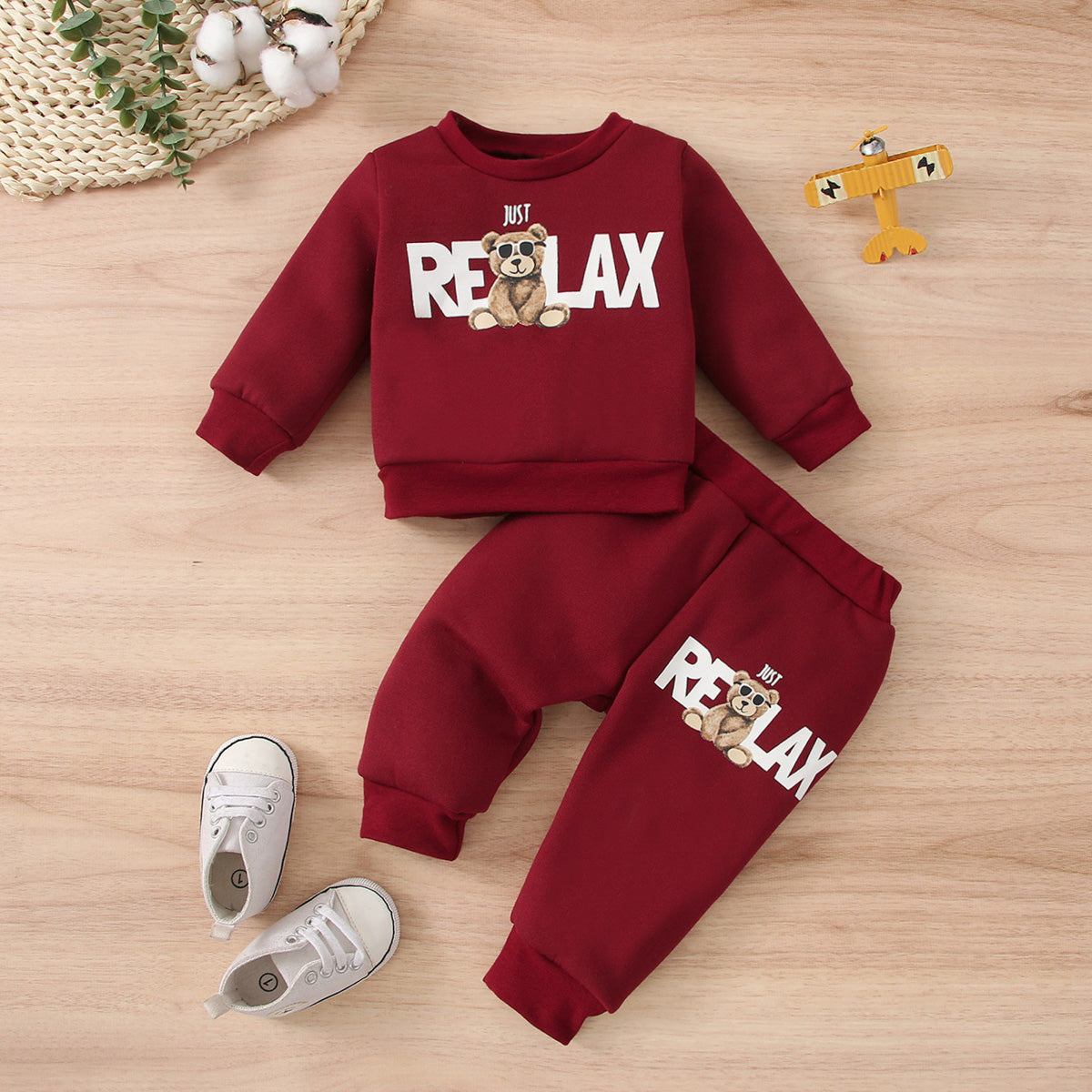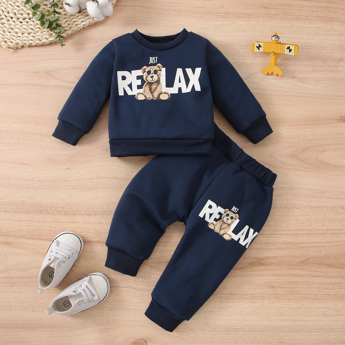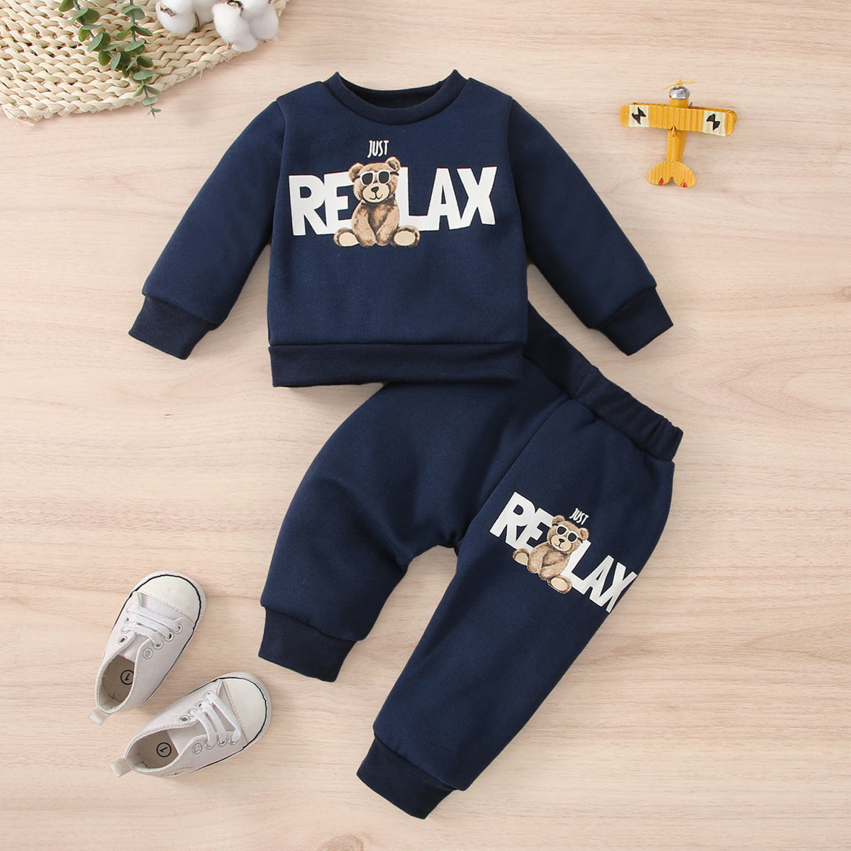 Baby Casual Bear Print Long Sleeve Sweatshirt Set Wholesale
